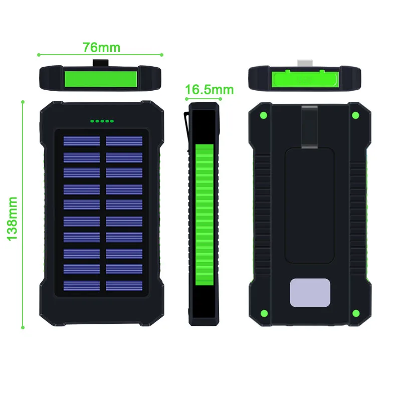 Carregador Power Bank Solar Portátil Universal com lanterna de LED 8000mAh Real