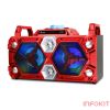 Caixa de som Bluetooth com sistema Mega Bass, design moderno com luz de LED que dá um charme especial. Possui formato compacto, dois alto-falantes de 4 polegadas de alta performance, seis equalizações que garantem um som potente com nitidez. A reprodução via Bluetooth dá maior praticidade na hora de ouvir as suas músicas favoritas, sem a necessidade de fios. Conta com entradas USB e SD(TF), o que aumenta o número de opções para escutar um excelente som. Além disso, tem um sistema moderno de recarga, em que você pode usar a bateria 5C que pode ser carregada pela entrada DC ou as pilhas sem perder a qualidade de som. Os momentos com os amigos ficarão mais animados! Além de escutar músicas, você vai poder soltar sua voz, pois ela tem um microfone que vai fazer sucesso nas suas festas.