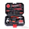 Conteúdo kit 9 em 1 1 peça Martelo de garra pequena 1 peça Caneta digital de medição elétrica 1 peça Alicate universal 6” 1 peça Chave de Phillips (+) 1 peça Chave de fenda (-) 1 peça Fita isolante 1 peça Estilete 1 peça Trena métrica 3M 1 peça Maleta de ferramentas portatil