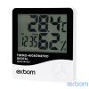 Além de medir a temperatura ambiente (IN) e a umidade relativa do ar (%RH). Os valores máximos (MAX) e mínimos (MIN) das 3 grandezas são registrados continuamente.O FEPRO-MUT50 indica também o horário (HH:MM) e a data (MÊS DIA) correntes, além de permitir a configuração de um alarme horário (despertador).