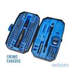 A chave com Estojo profissional é usado com material de qualidade , com Aço Cromo-Vanádio (CrV), tratamento antiferrugem por fosfatização. Este conjunto versátil é projetado para atender a uma ampla gama de necessidades de reparo e manutenção, desde eletrônicos delicados até trabalhos de precisão mais robustos.
