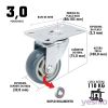 O rodízio giratório de 3.0” com roda em polipropileno (PP) foi desenvolvido para aplicações de carga média, unindo resistência estrutural, mobilidade fluida e durabilidade prolongada.